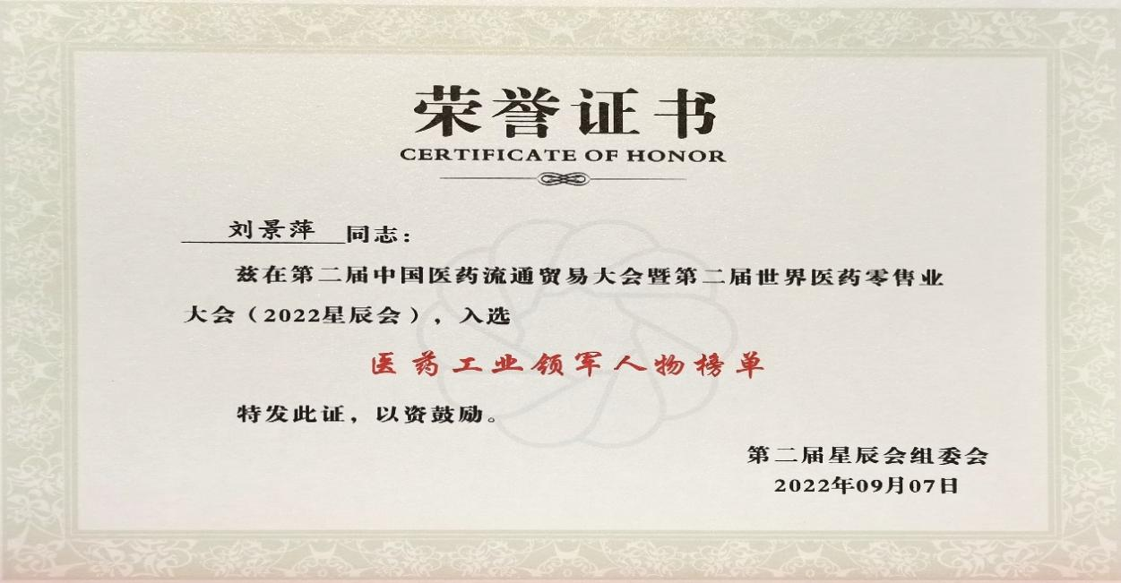 在本次开幕式上,发布了“医药工业领军人物”、“医药零售领军人物”榜单,银河galaxy药业集团刘景萍董事长凭借在儿药领域多年的努力探索和对行业的杰出贡献,荣获“医药工业领军人物”称号。