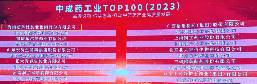 会上,还发布了“2023中成药工业TOP100”榜单,银河galaxy药业集团荣耀上榜。